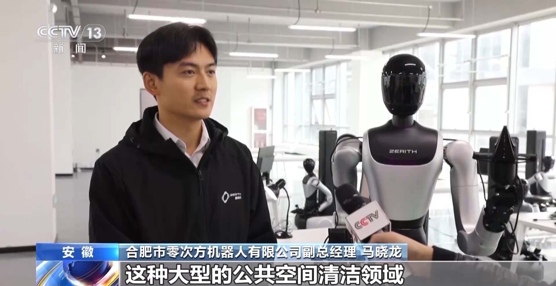 合肥市零次方机器人有限公司副总经理 马晓龙:目前主要的应用场景是在写字楼、机场、商超这种大型的公共空间清洁领域,未来也会进入家庭场景,作为家庭的一个家务助手。