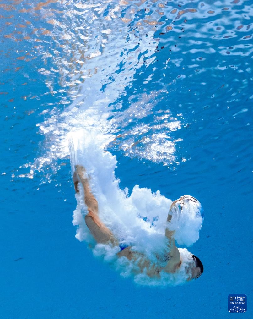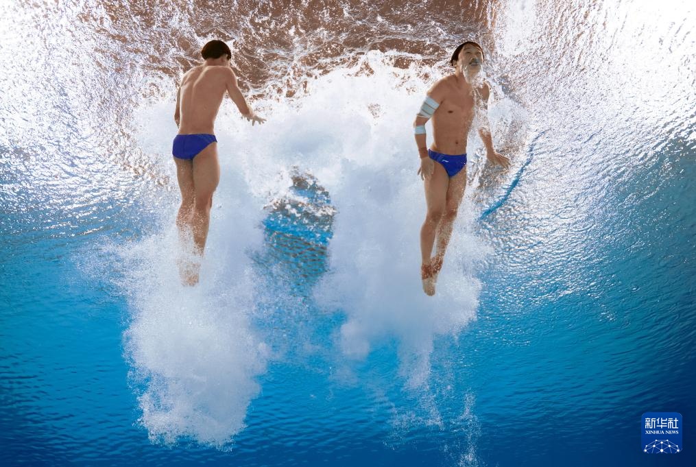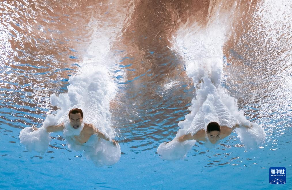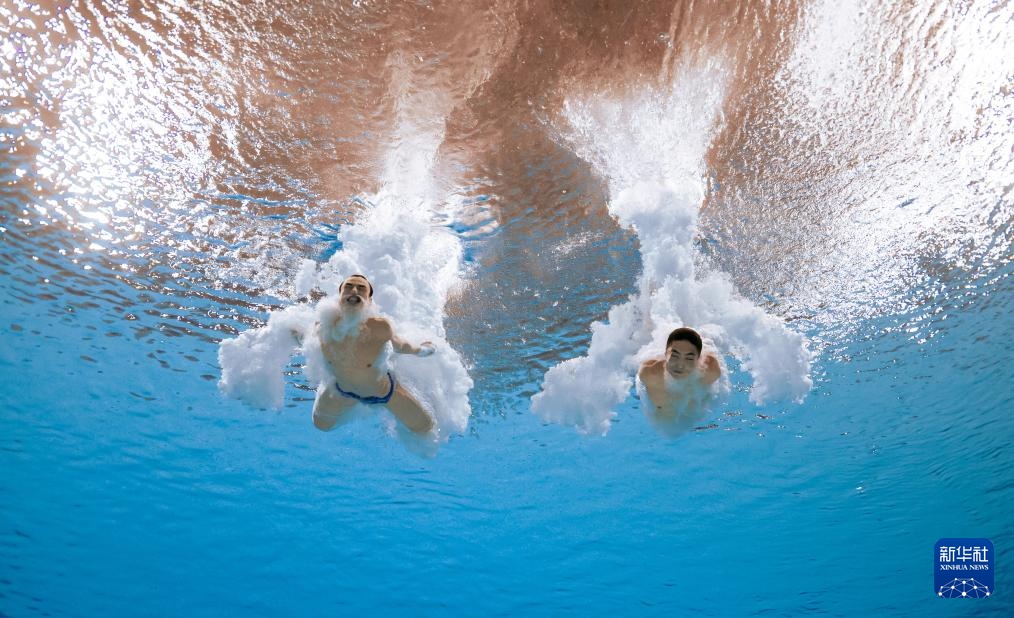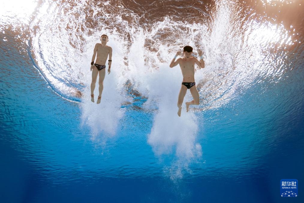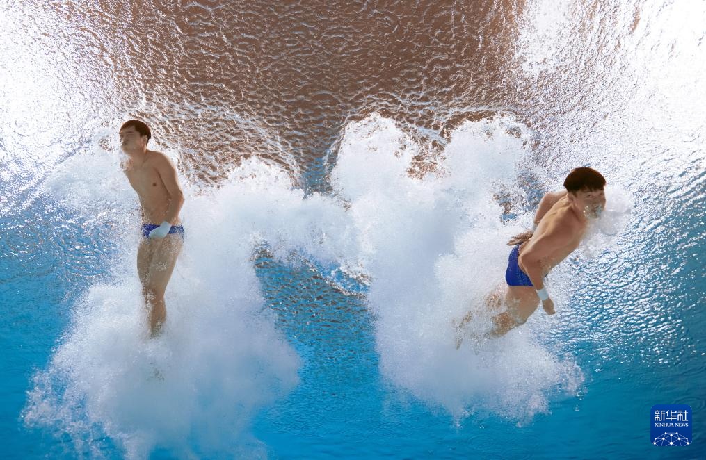 11月3日,湖北队组合辜煜恒/张家卿在男子双人10米跳台比赛中。
