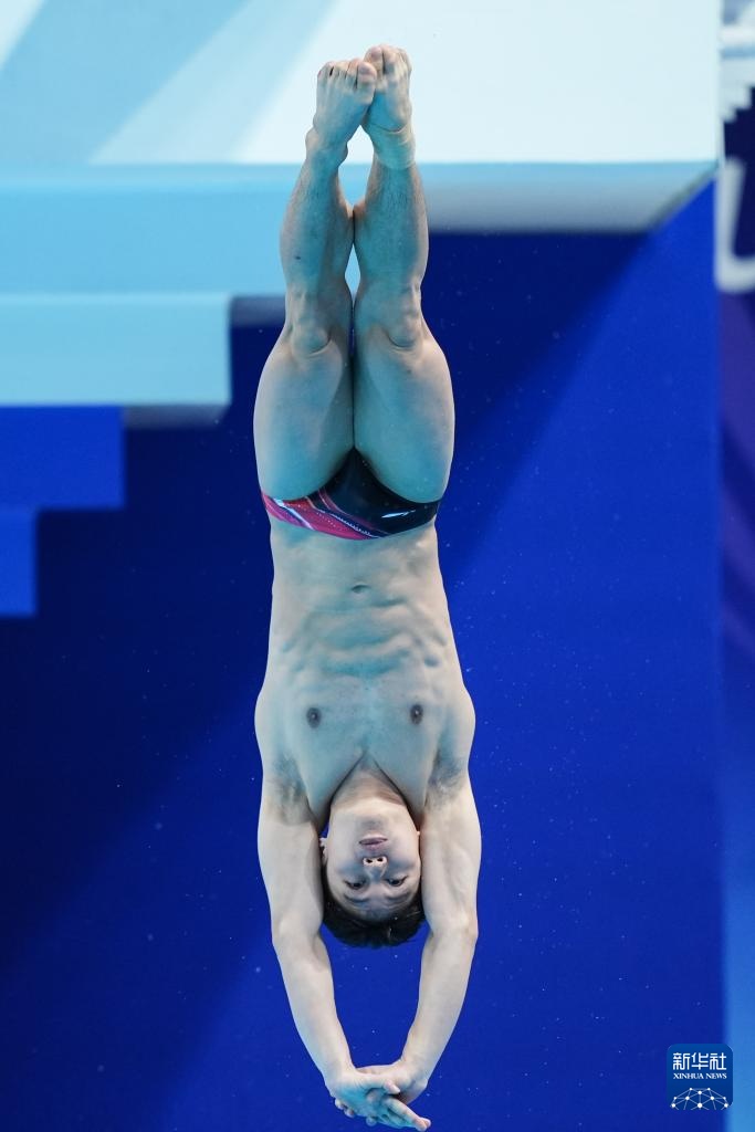 11月3日,湖北队选手郑九源在男子三米板比赛中。