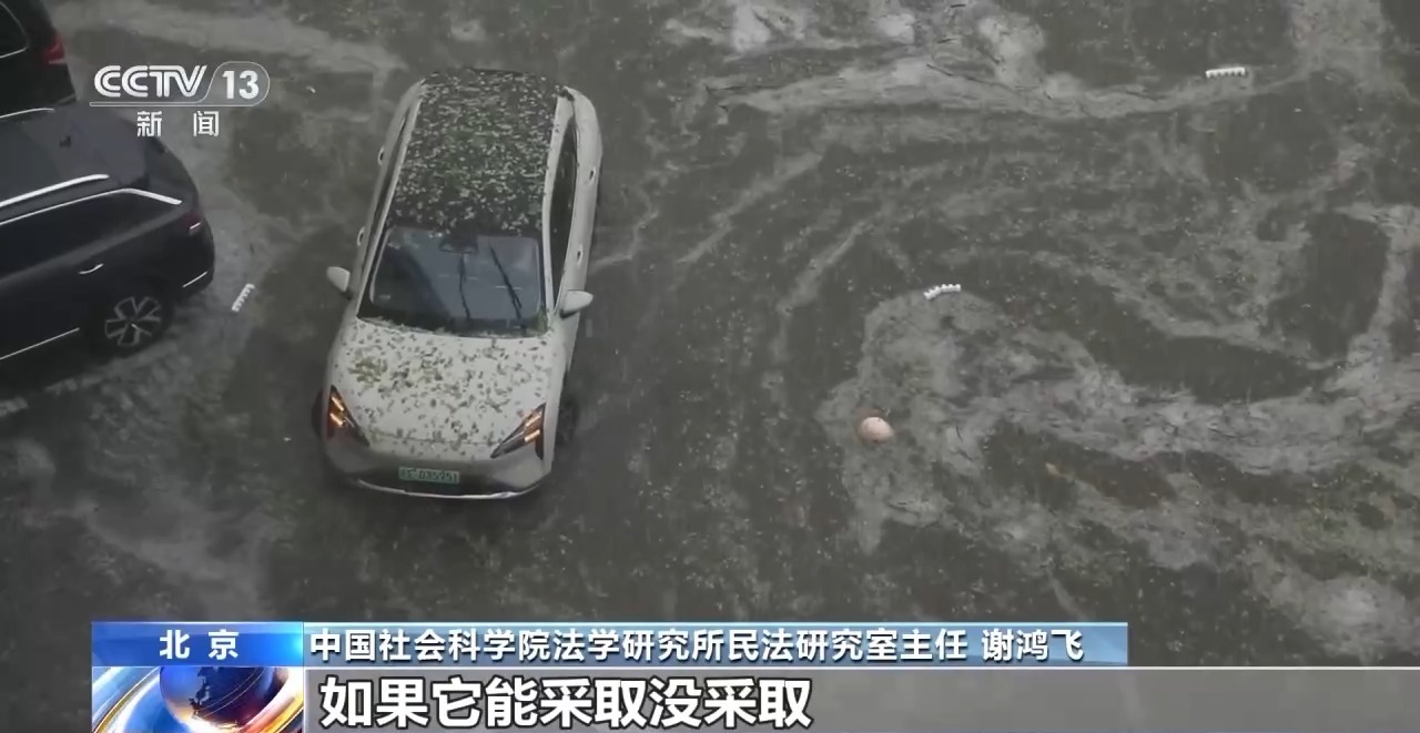 中国社会科学院法学研究所民法研究室主任 谢鸿飞:比如说极端天气来了,车停在地下室被淹了,这种情况下就看一点,物业能不能在洪水来的时候,及时通过疏导或者其他方式,尽量减轻或者防止损害发生,如果它能采取没采取,把损失扩大了甚至是造成了损失,那确实要承担责任。