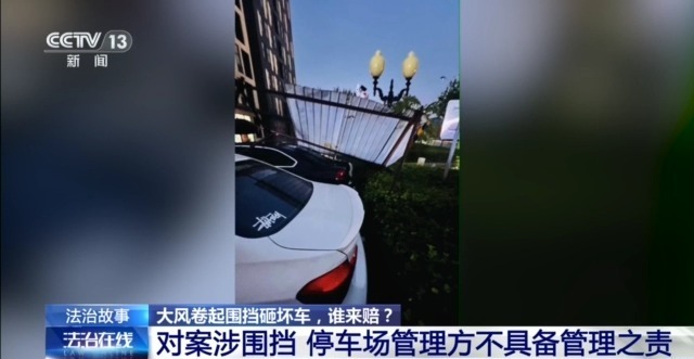 北京市房山区人民法院法官助理 王辉:就本案来说,周女士的车辆被损毁,是因为铁皮围挡被大风卷起来砸坏的,这个车辆的停车场管理方是没有任何责任的。