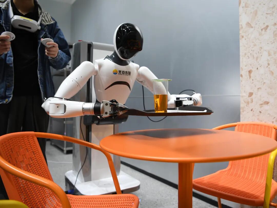 光谷东智机器人在奶茶店端茶倒水。记者高勇 摄