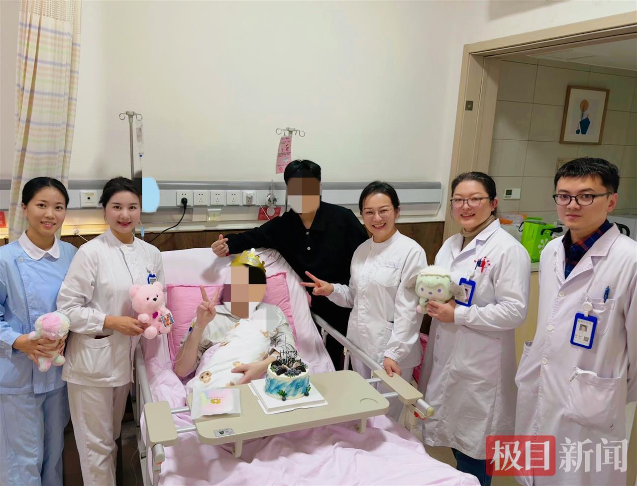 武汉市中心医院南京路院区产科医护人员为“同月同日生”的一家三口准备生日惊喜