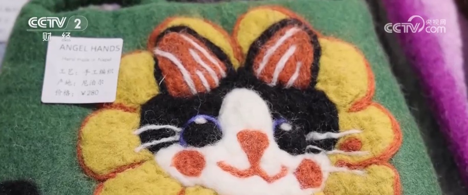 尼泊尔参展商弗兰克表示,羊毛毡的这个手工包包都是手工编织的,上面都是绣花,很期待把这个产品在第八届进博会那里展示。他们工厂刚开始的时候十多个人,现在已经是有六十几个人在工厂里面上班。
