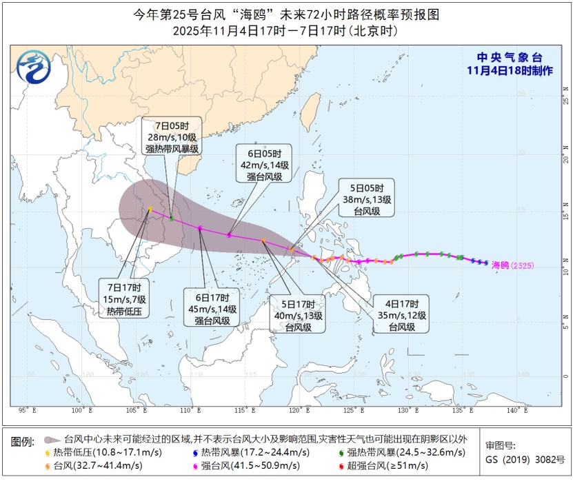 中央气象台11月4日18时继续发布台风蓝色预警: