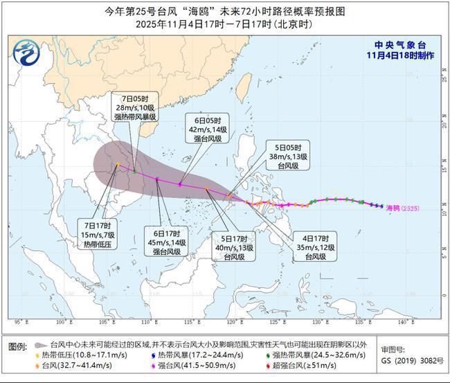 央视网消息:中央气象台11月4日18时继续发布台风蓝色预警: