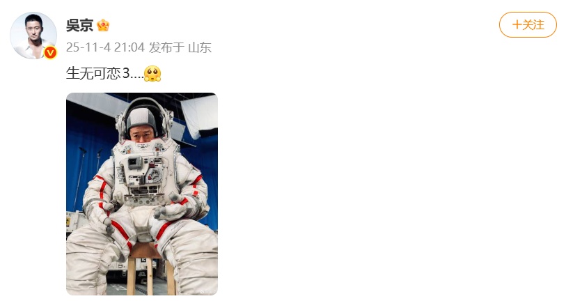 11月4日晚间,吴京晒《流浪地球3》片场照。