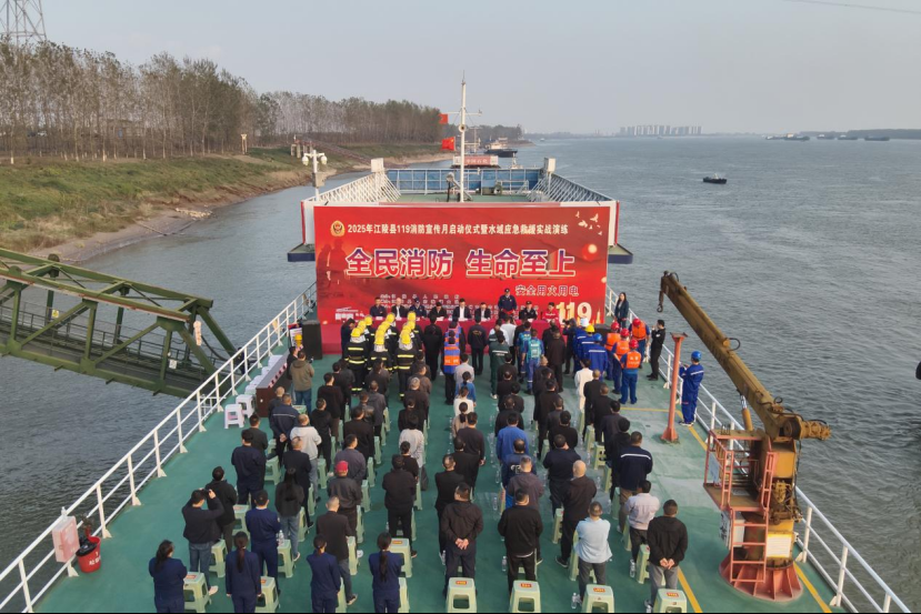 荆楚网(湖北日报网)讯(通讯员 陈园)11月4日,江陵县2025年“119”消防宣传月启动仪式暨水域应急救援实战演练正式拉开帷幕。江陵县委常委、常务副县长张瑜,县政府办副主任孙志达及各相关单位分管领导,30家社会单位代表现场观摩演练。