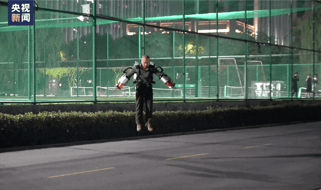 伴随着一阵轰鸣,一名男子背着一个“大包”,双臂张开,只见他用力一蹬,竟飞到了离地近两米的半空中,并稳稳悬停!