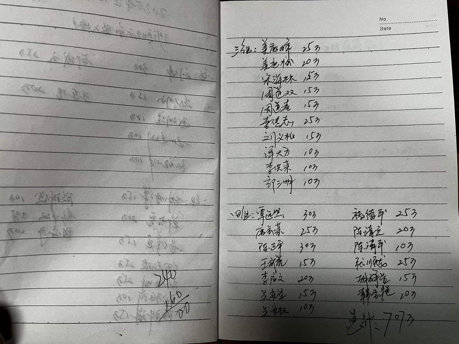罗官章记载的村民收入情况