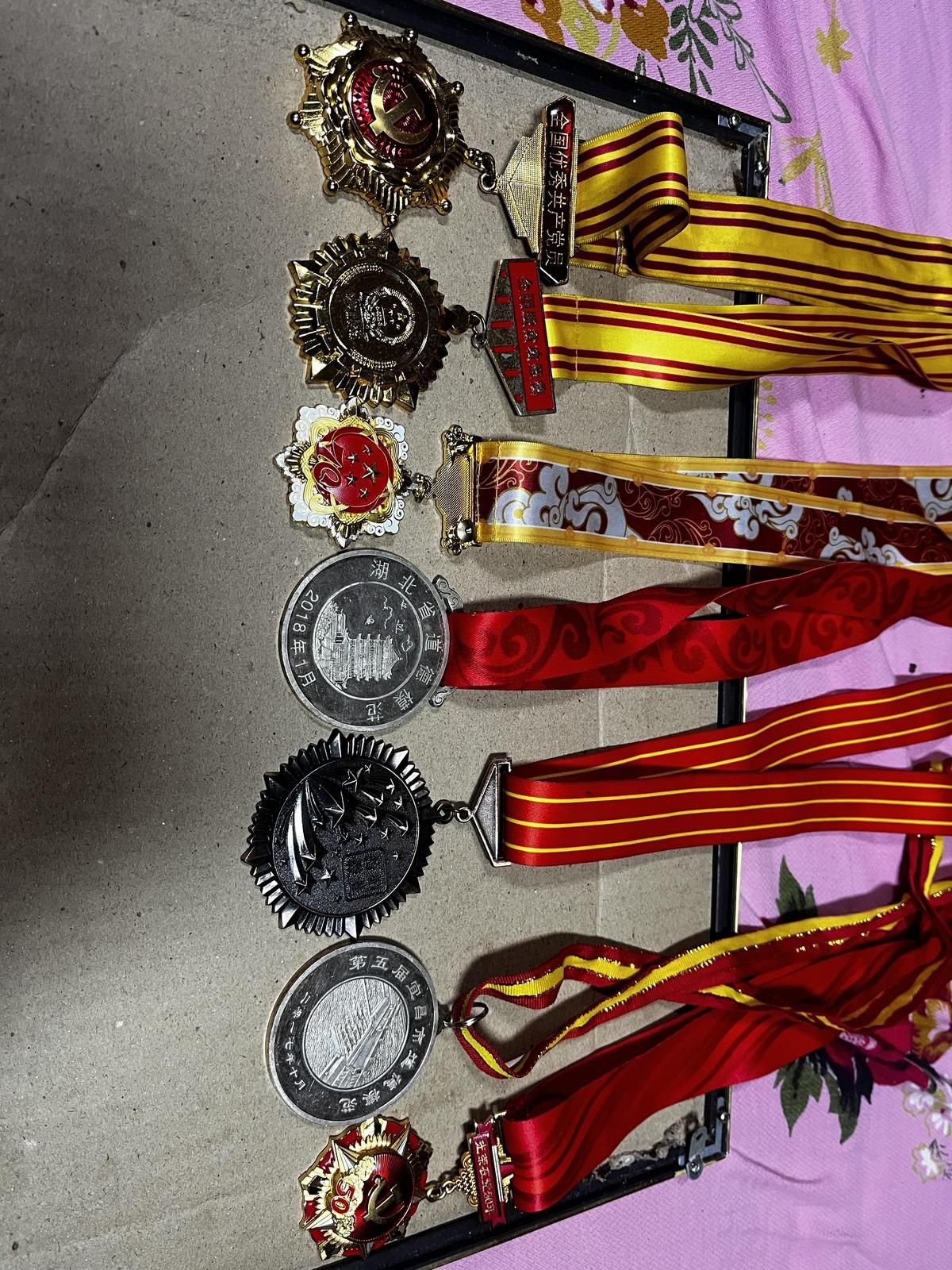 在罗官章的衣柜里,最上层有一个小包裹,里面是7枚奖章:庆祝中华人民共和国成立七十周年纪念章、光荣在党五十年纪念章及全国优秀共产党员、全国道德模范提名奖、湖北省道德模范、荆楚楷模、宜昌市道德模范等荣誉奖章。