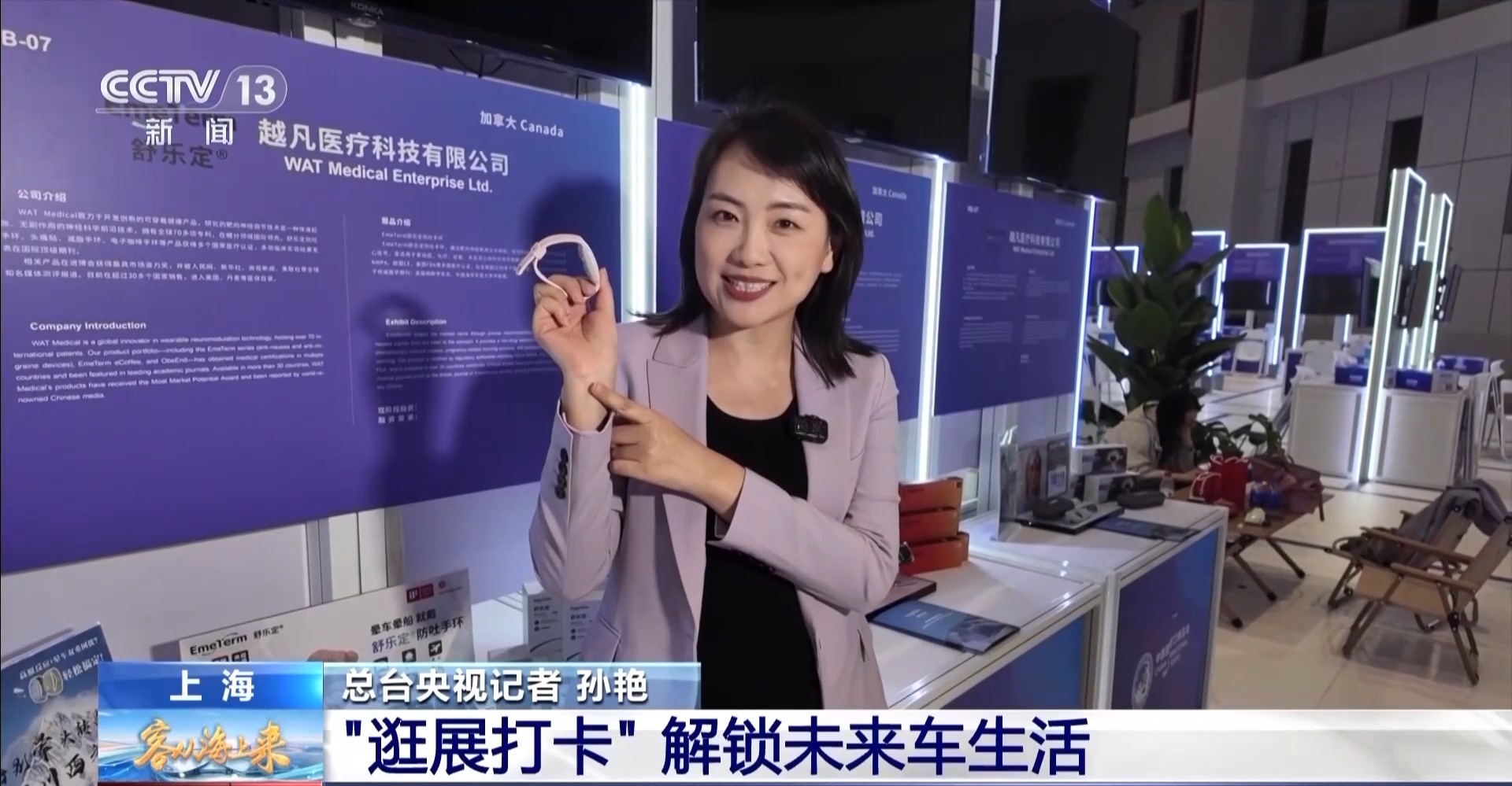 在创新孵化专区,“防晕车的手环”可以通过靶向神经的调节技术,可以轻轻刺激手腕上的正中神经,就像给大脑发送了一个“停止恶心”的信号,戴上它,无论车速多快都不会晕车。