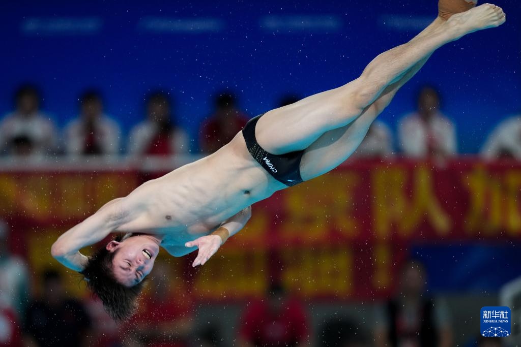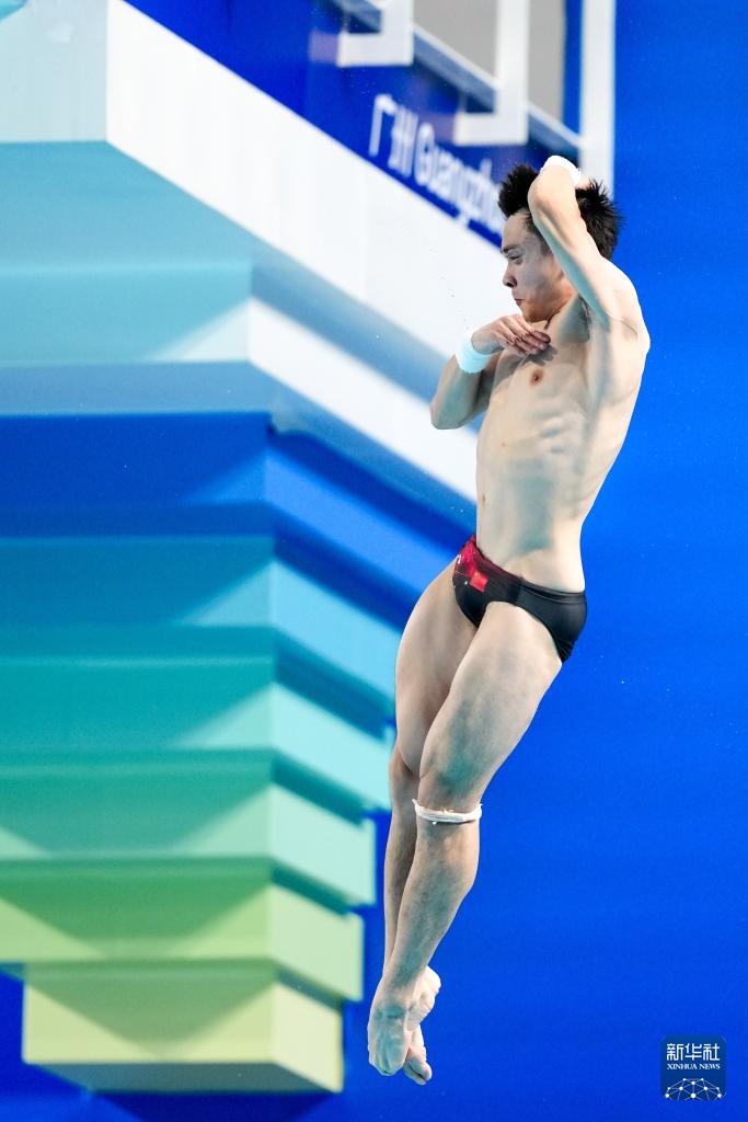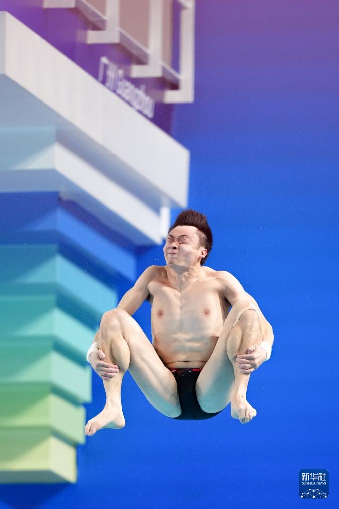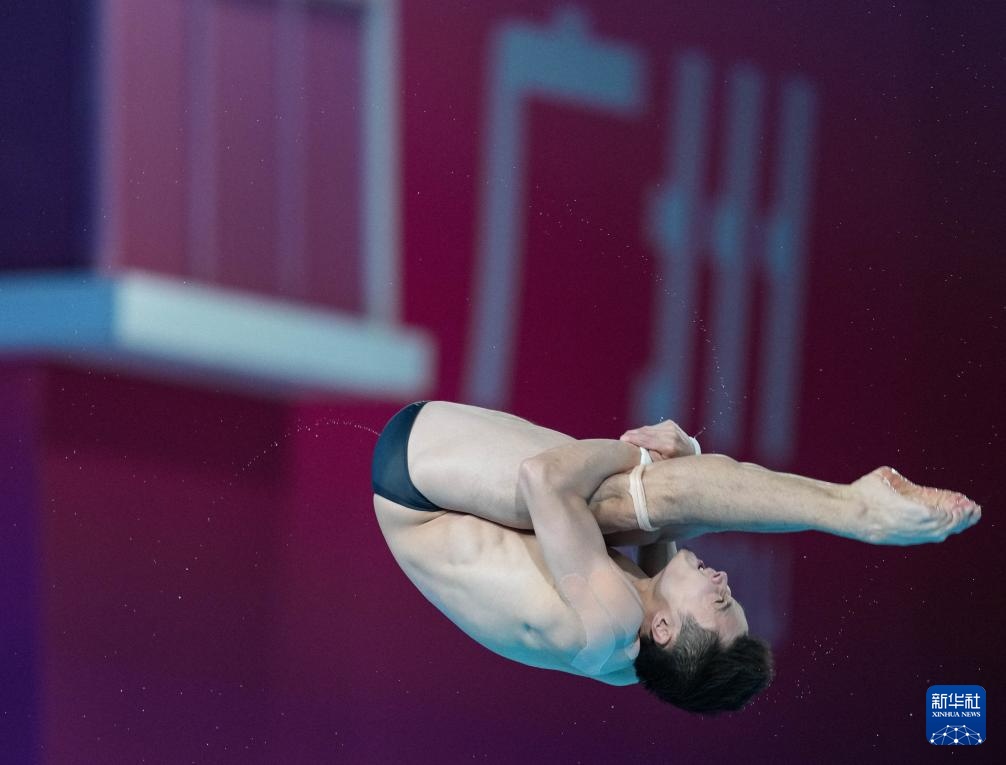 11月5日,广东队选手郑钧之在男子个人全能3米跳板比赛中。最终,他获得男子个人全能第四名。