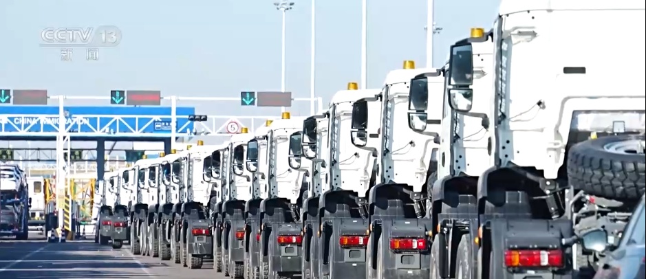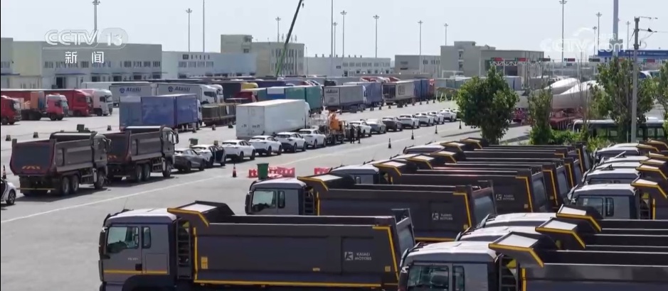 霍尔果斯口岸管理局副局长 张磊:在交通运输部门、海关的大力支持之下,突破了商品车可以以一辆头车带五辆的模式,可以从货场直接开到通关现场。