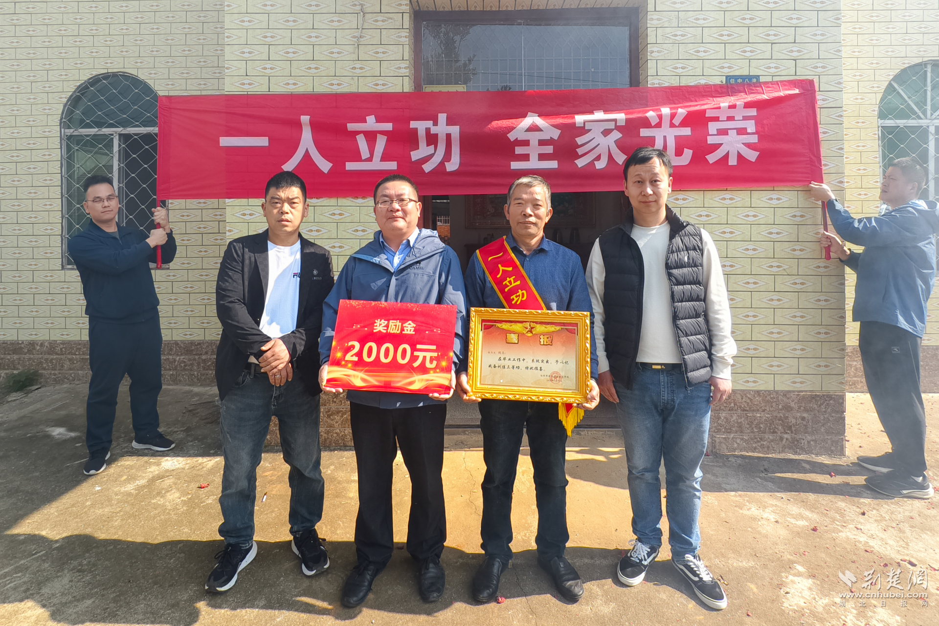 荆楚网(湖北日报网)讯(通讯员 舒威)“全雪婷同志在部队荣立三等功,这是您家的光荣,也是我们江夏人民的骄傲!”11月5日上午,武汉市江夏区退役军人事务局工作人员联合大桥产业园退役军人服务站负责人,拉着“一人立功 全家光荣”横幅、带着烫金喜报和慰问金,来到现役军人全雪婷家中,将这份沉甸甸的荣誉送到其家属手中。当日,喜报送达队伍还先后前往五里界街道和乌龙泉街道,为黄虎、任亦凡两位荣立三等功的现役军人家庭送去荣光与敬意。