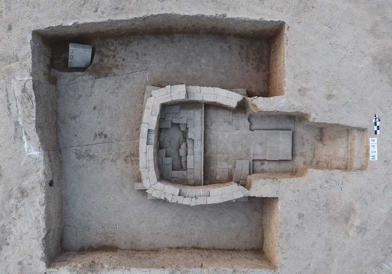 唐代墓葬以南北向斜坡墓道洞室墓为主,占比98%以上。其中,M144为一座东西向斜坡墓道砖室墓。基址中出土一块刻有唐代“开元三大士”之一不空法师译本《佛顶尊胜陀罗尼》的石碑,为西安地区首次发现。从营建过程、墓葬形制、塔基尺寸及出土刻经碑等方面来看,M144与河南登封法王寺二号塔地宫十分相似,应为一座唐代塔墓。