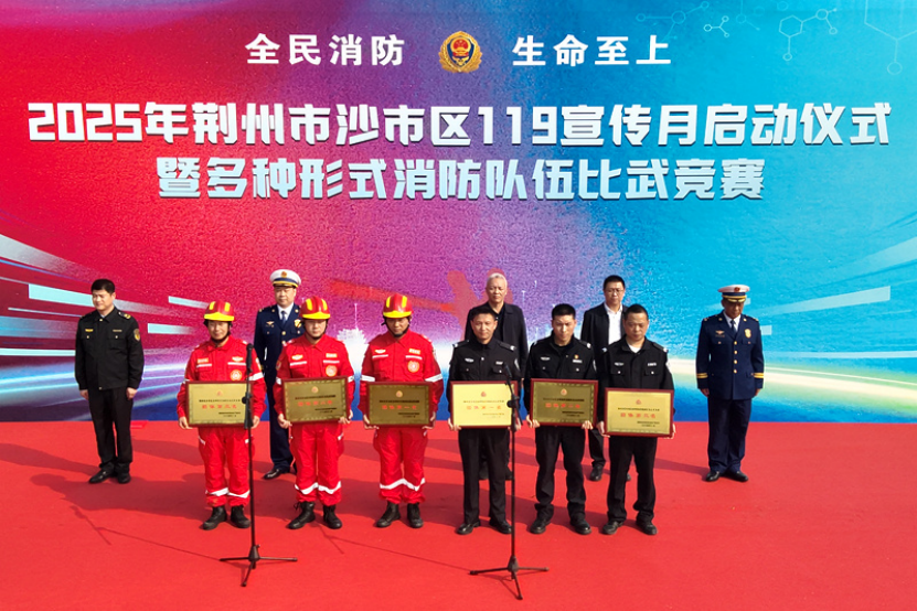 硝烟尚未散尽,2025年沙市区消防宣传月启动仪式紧接着拉开帷幕。沙市区副区长、区公安分局局长张劲松在致辞中表示:“消防安全没有终点,只有连续不断的新起点。全区上下要始终树牢‘人民至上、生命至上’理念,把对消防的重视转化为实际行动,把对安全的追求融入日常生活,共同守护我们的家园。”仪式上正式发布了《沙市区2025年度消防宣传月活动实施方案》,为接下来一个月内形式多样、内容丰富的消防安全宣传活动描绘了清晰蓝图,并宣读了《全区专职消防队伍比武竞赛的通报》与《关于表彰2025年全区消防工作先进基层工作者的决定》,对竞赛优胜团体、贡献突出个人进行了表彰。