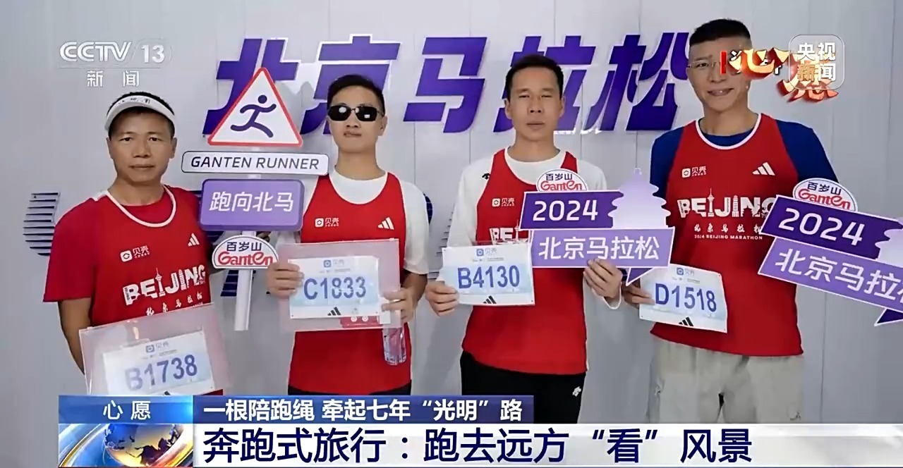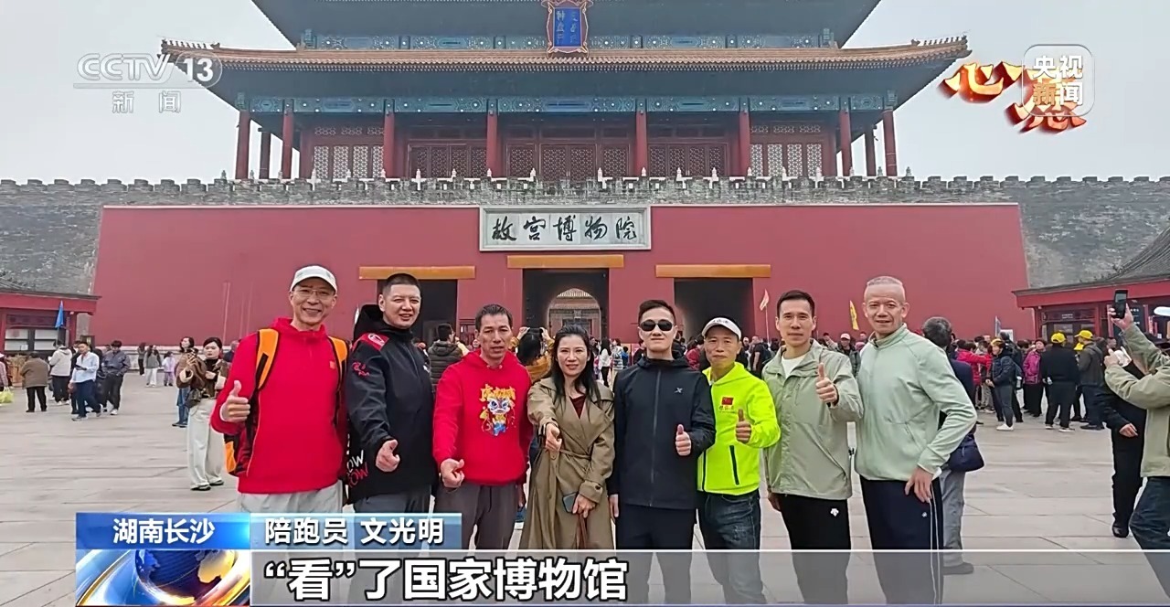 文光明:盲人他来参加比赛不是为了获奖,是让更多的人知道他们也能跑步。我们自己出去跑步比赛的目的,也是为了自己以后留一些回忆,而且趁机去旅游一下,所以我们带着他们去各个景点玩一下,一起去爬了长城,去“看”了故宫,“看”了国家博物馆,到厦门就去了著名的鼓浪屿,到沙滩上跑,让他感受海水沙滩。