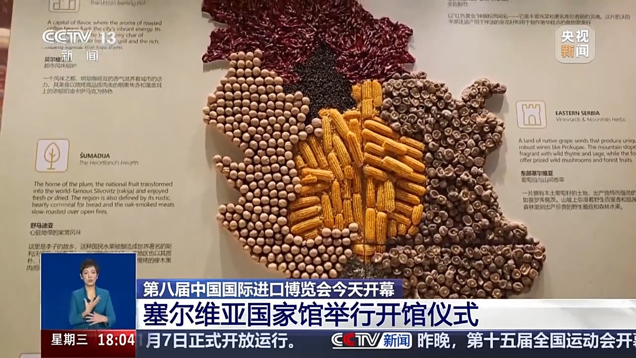 开幕式之后,我们在国家展展馆,见证了塞尔维亚国家馆的开馆仪式,塞尔维亚总理出席了开馆仪式。塞尔维亚已连续八年参加进博会,此次塞尔维亚国家馆主要展示了当地的特色农产品等等。塞尔维亚总理接受采访时表示,除了国家馆之外,还有大约20家塞尔维亚企业来参展,深化了两国的经贸往来,通过进博会让中塞两国“铁杆”友谊进一步加深。