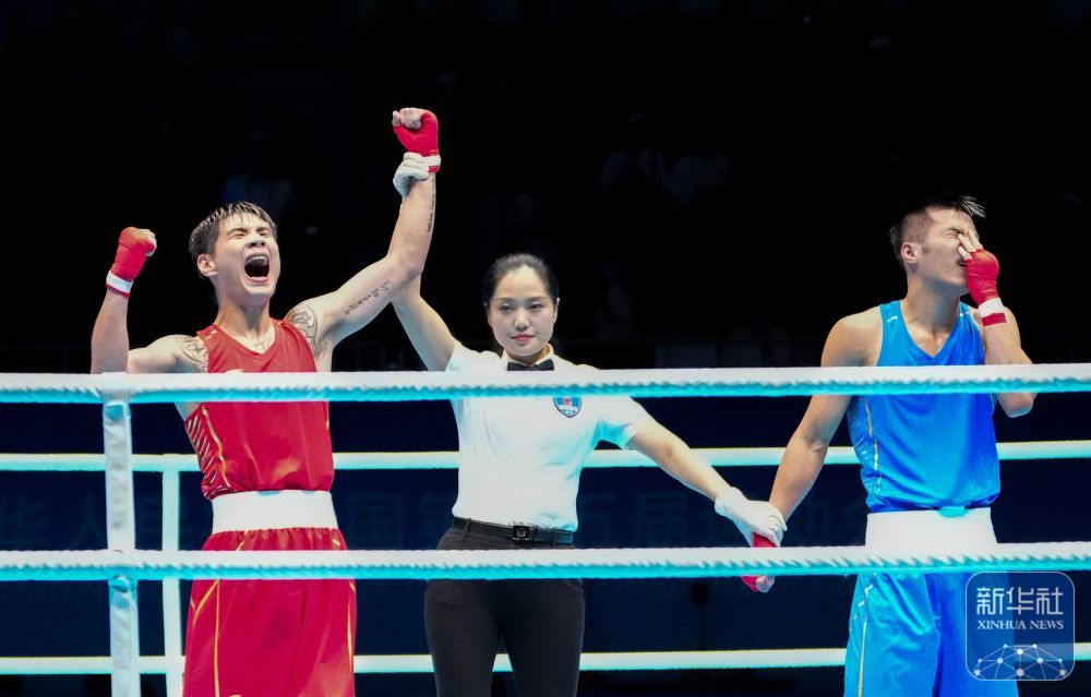 11月5日,在广东省深圳市举行的第十五届全国运动会拳击男子63.5公斤级八分之一决赛中,河北队选手蔡宇君战胜武汉体育学院队选手戴振民,晋级下一轮。
