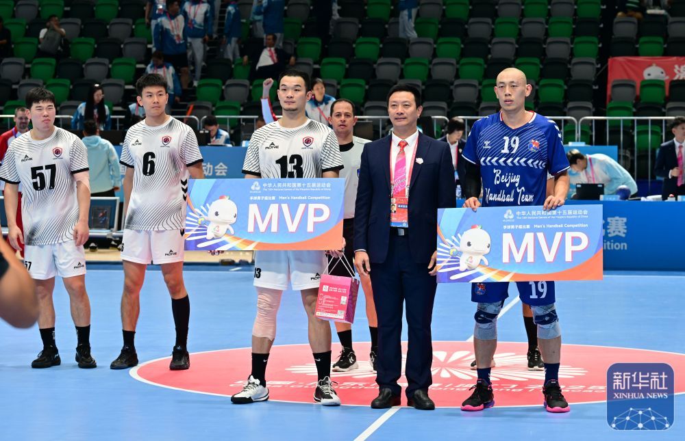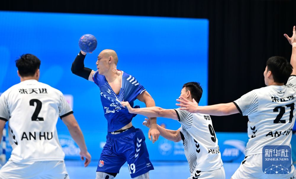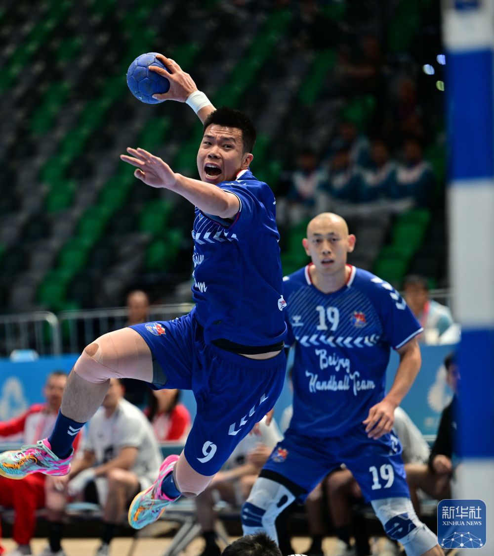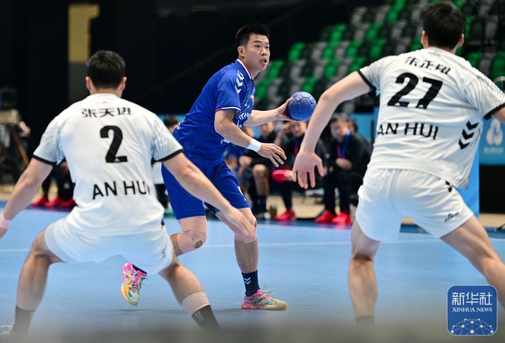 11月5日,在香港启德体艺馆进行的第十五届全国运动会男子手球预赛A组比赛中,安徽队28比22战胜北京队。