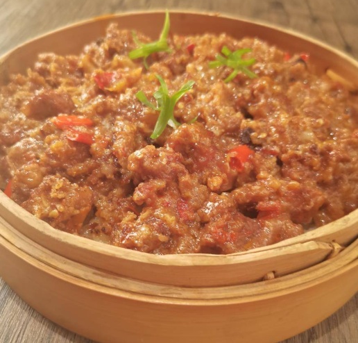 粉蒸以米磨粉裹食材,米粉吸足油脂,入口绵软