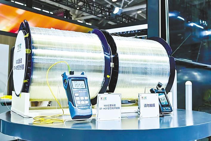 长飞公司在展会上展示其空芯光纤。(受访单位供图)