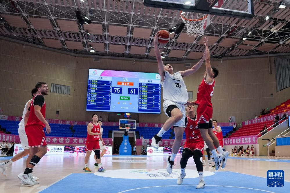 当日,在广东省东莞市举行的第十五届全国运动会篮球男子成年组小组赛中,上海队107比83战胜香港队。