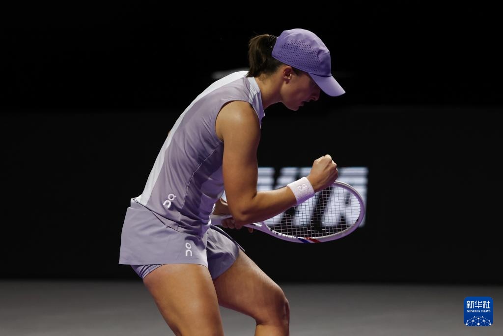 11月5日,斯维亚特克在比赛中庆祝得分。