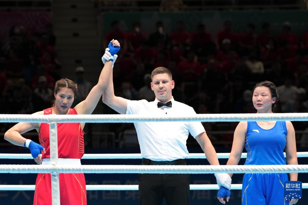 当日,在广东深圳举行的第十五届全国运动会拳击女子75公斤级八分之一决赛中,黑龙江队选手汪丽娜战胜安徽队选手李佳美,晋级下一轮。