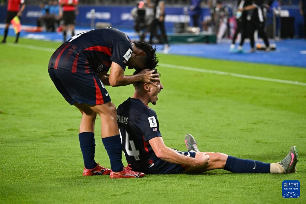 11月5日,柔佛新山队球员奥斯卡·阿里巴斯(右)在进球后庆祝得分。
