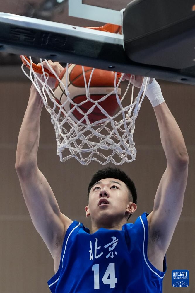 11月5日,北京队球员王少杰在比赛中扣篮。