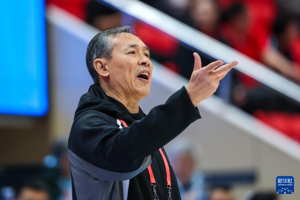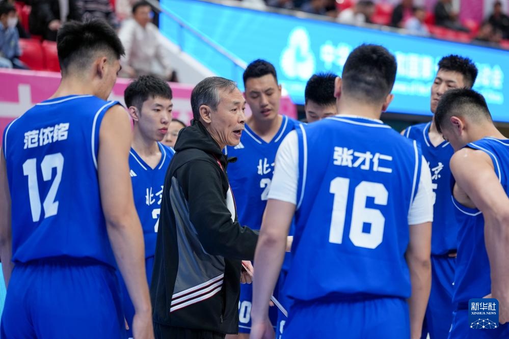 11月5日,北京队主教练许利民(左三)在比赛间隙布置战术。