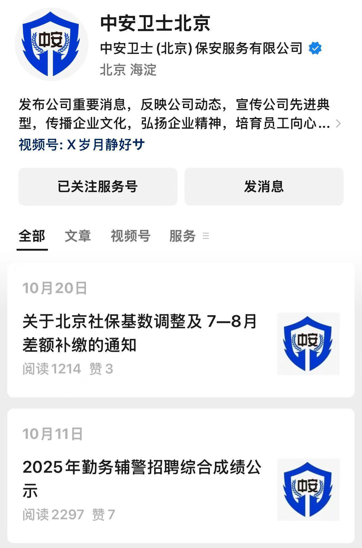 记者注意到,“中安卫士北京”公众号于2025年9月5日发布一则“北京市公安局公共交通安全保卫总队勤务辅警招聘公告”内容。公告中招聘条件显示,该岗位试用工资4200元,转正后工资待遇5111元—6839元(注:此标准含社保及住房公积金个人缴纳部分)。