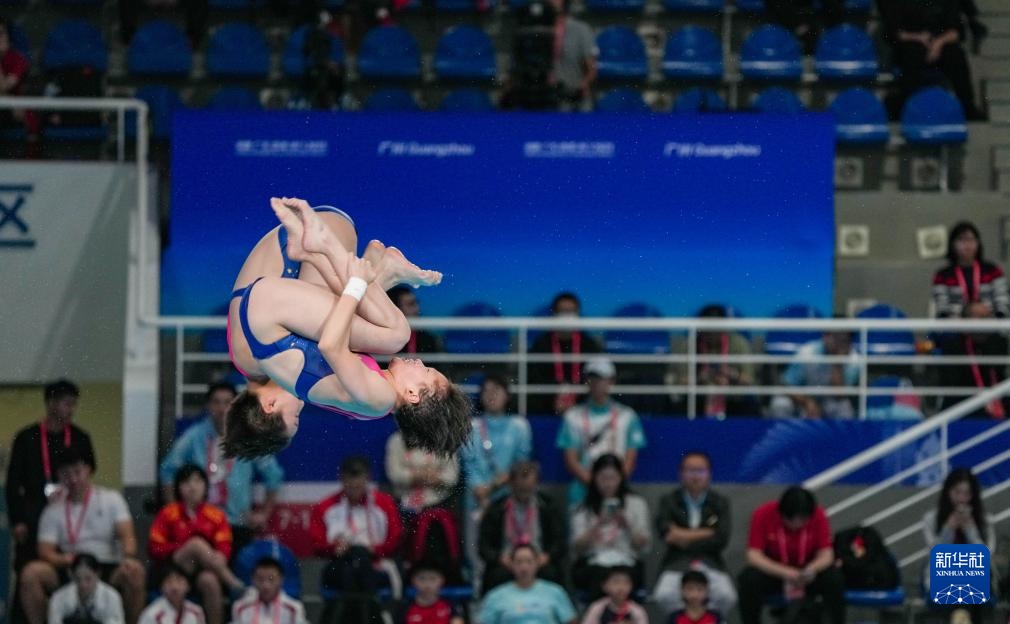当日,第十五届全国运动会跳水女子双人10米跳台预赛在广州市奥体中心游泳馆举行。