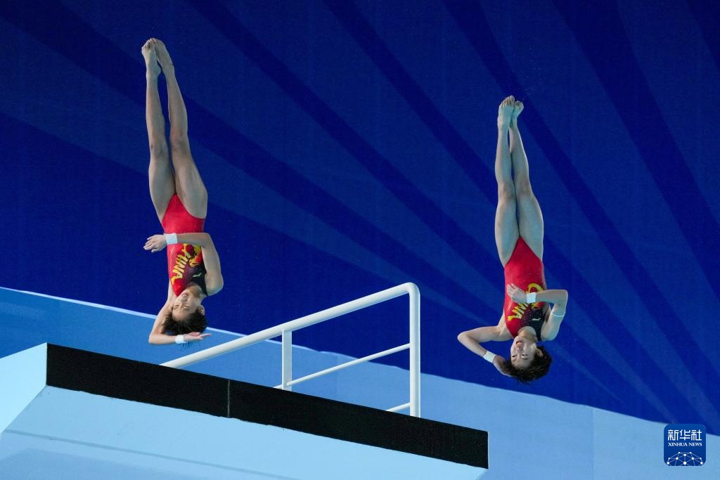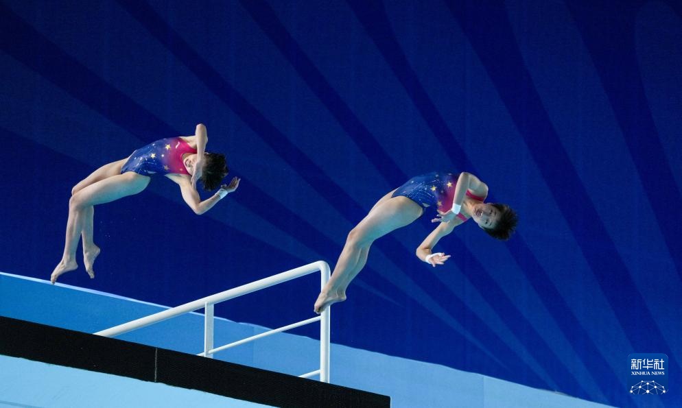 11月6日,广东队组合全红婵/王伟莹在比赛中。她们以预赛第三名的成绩晋级决赛。