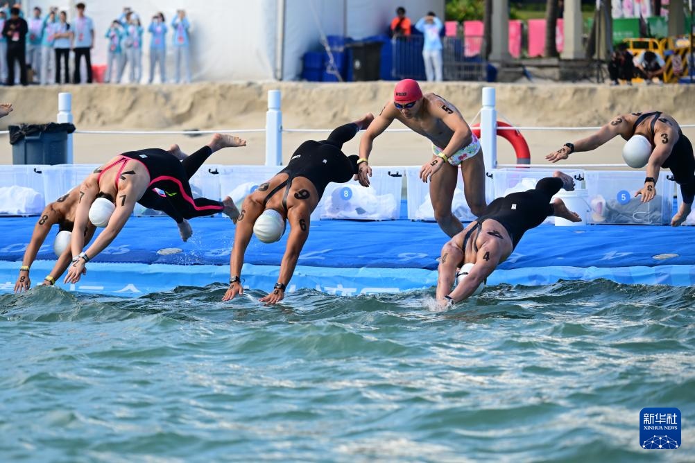 11月6日,参赛选手在比赛中入水。