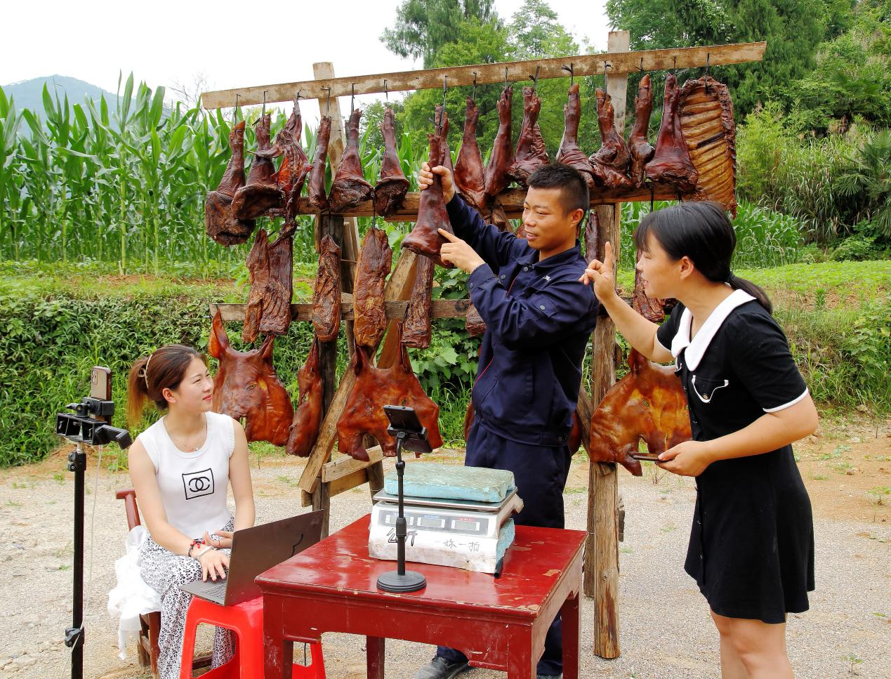 为进一步拓展销路,在县、镇两级党委、政府的大力支持下,阮长辉在抖音、淘宝、拼多多等电商平台售卖腊肉,并邀请达人一起带货直播销售,将养殖土猪、宰杀年猪、熏制腊肉的全过程记录下来,让消费者直观感受传统美食的魅力,成功吸引众多网友关注“腊肉哥”,更让腊肉销往全国各地,销量节节攀升,销售额达2800万元。
