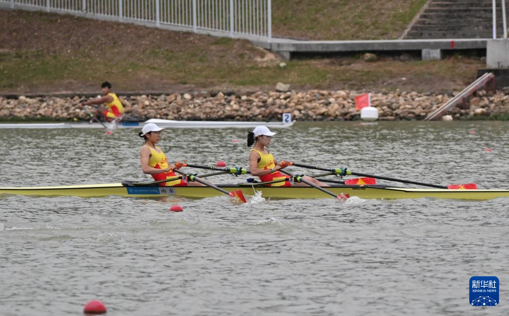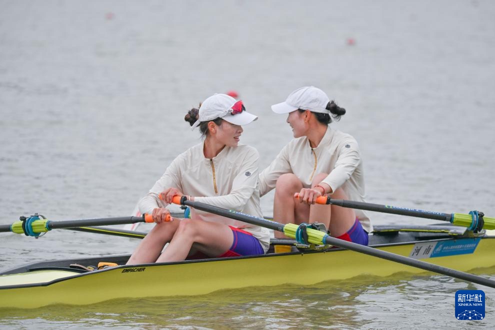 11月6日,河南队选手邢新茹/王佳佳在女子轻量级双人双桨预赛后。最终,她们晋级决赛A组比赛。