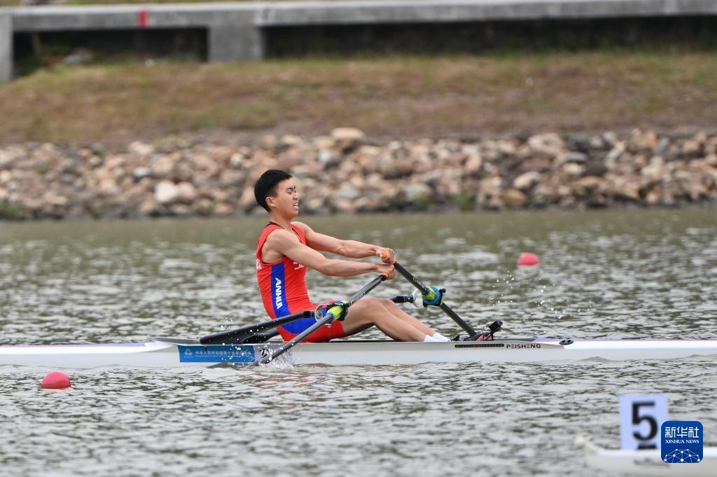 11月6日,贵州队选手程宗旺/陈红松在男子轻量级双人双桨预赛中。最终,他们晋级决赛B组比赛。