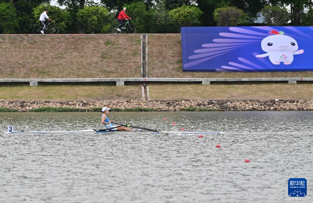 11月6日,安徽队选手张芳芳在女子轻量级单人双桨预赛中。最终,她晋级决赛A组比赛。