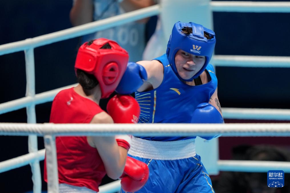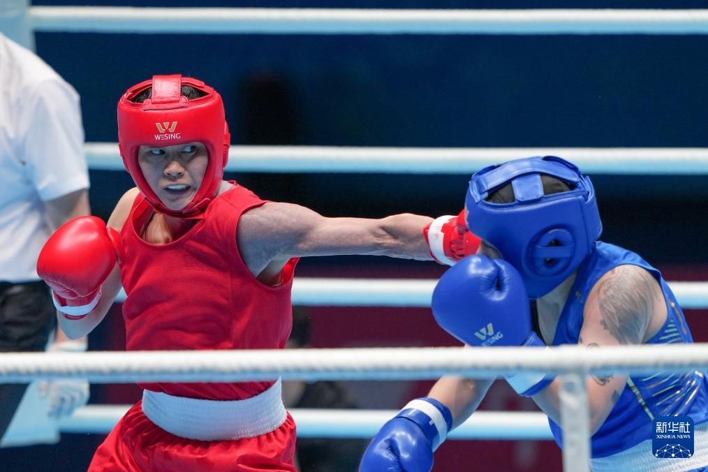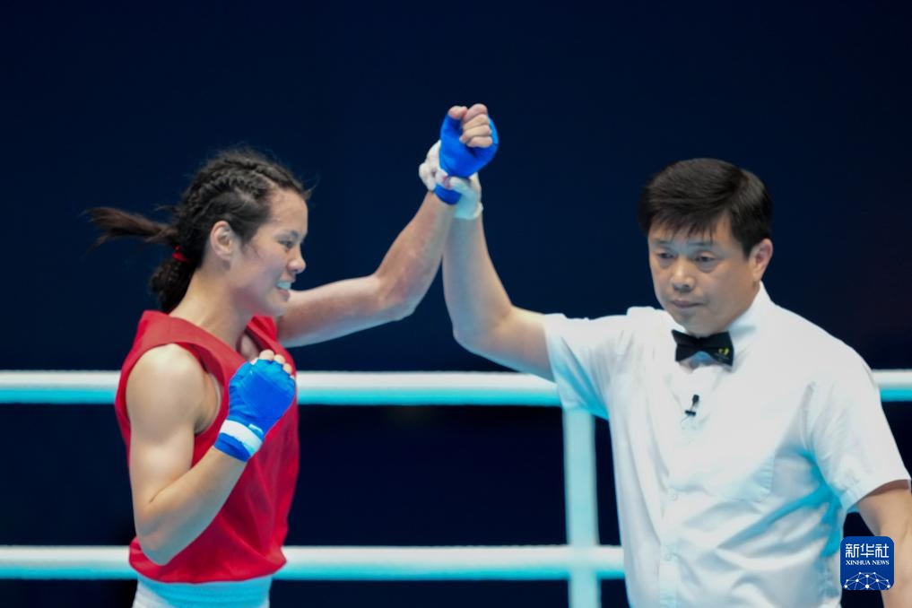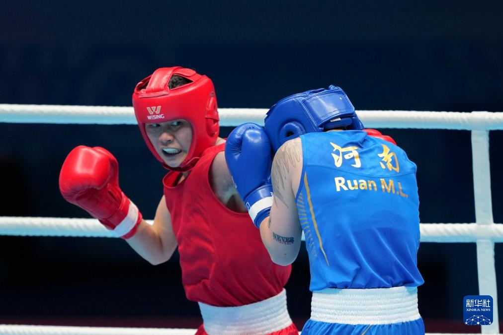当日,在深圳举行的第十五届全国运动会拳击女子57公斤级四分之一决赛中,江苏队选手许紫春战胜河南队选手阮木兰,晋级下一轮。