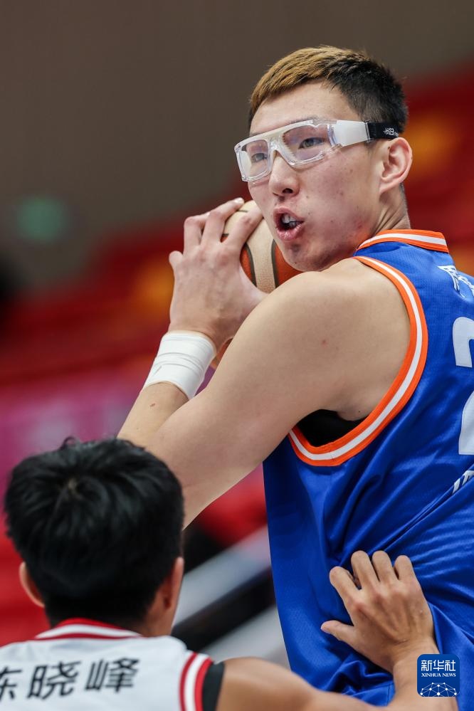 11月6日,四川队球员周琦(右)在比赛中持球进攻。