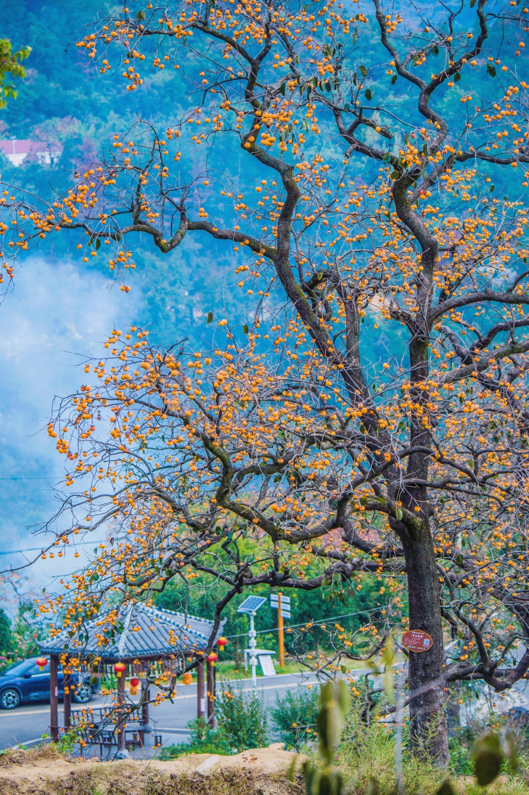 入住山间民宿,推窗即见好杮