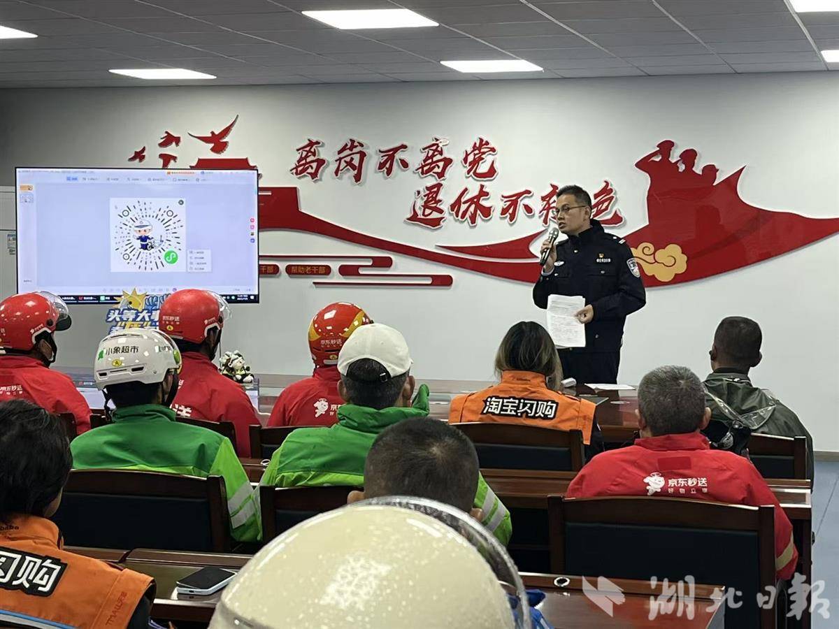 湖北日报讯(通讯员张鹏)11月6日,武汉市公安局交通管理局车辆管理所内,一场针对快递、外卖骑手的交通安全教育培训活动有序开展,来自10余家快递、外卖行业的骑手参加此次培训。该活动由武汉交警组织,旨在进一步提升骑手的交通安全意识,预防和减少交通事故发生,共同营造安全、有序、文明的城市交通环境。