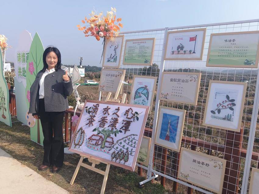 诗画相融,激活乡村文化基因。除了视觉冲击力十足的茶籽画,孩子们创作的《金秋赏油茶》《山乡油茶谣》等诗歌同样引人共鸣。“茶花白,茶籽香,秋风送暖满山岗……”朗朗上口的词句配以茶枝拼贴的插画,让油茶从农产品升华为可触可感的文化符号。辅导站老师介绍,这些作品是孩子们在劳动实践课上深入油茶园后有感而发,“他们用家乡的物产赞美家乡,这种情感比任何技巧都珍贵”。澴潭镇相关负责人表示,将油茶与文化创意结合,既展现了乡土资源的多元价值,也为乡村振兴注入青春活力。如今,油茶不仅是当地支柱产业,更成为传承文化、滋养创意的载体。正如那幅“乌鸦喝水”茶籽画中弯曲的吸管——古老的寓言因乡土元素的注入焕发新生,而孩子们指尖流淌的巧思,正为家乡发展注入绵长不绝的活力。