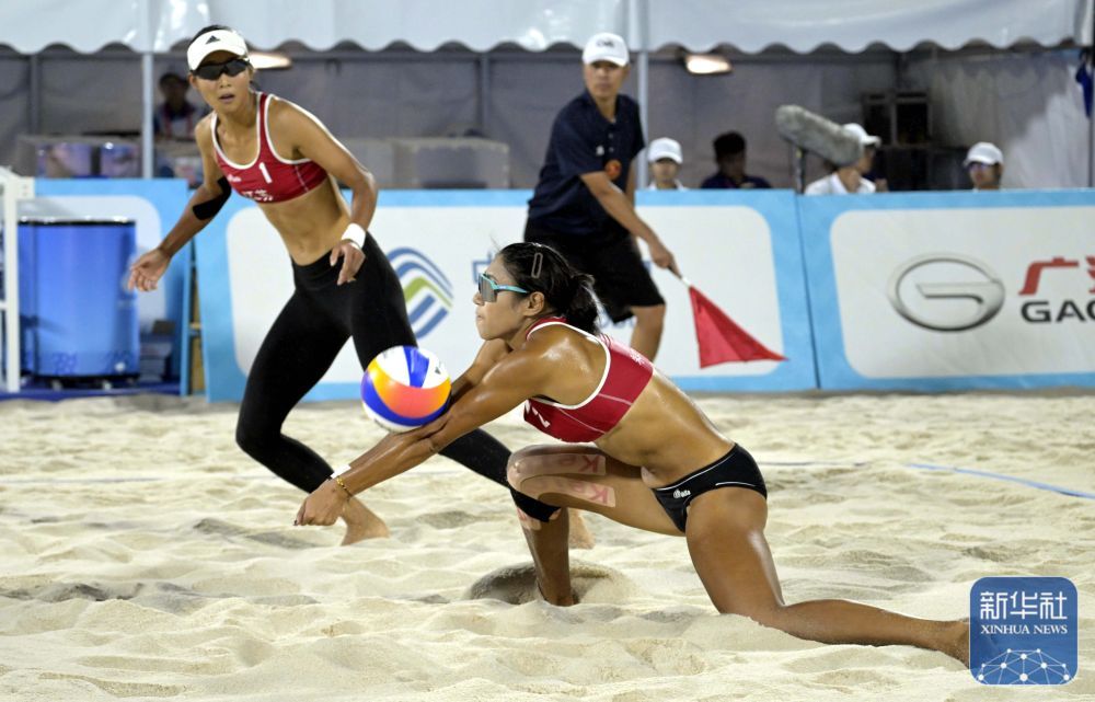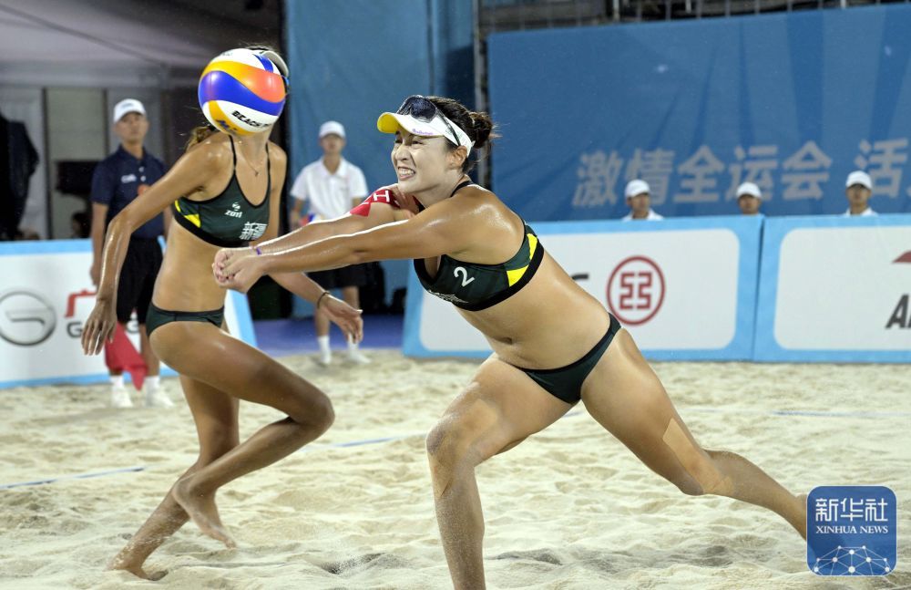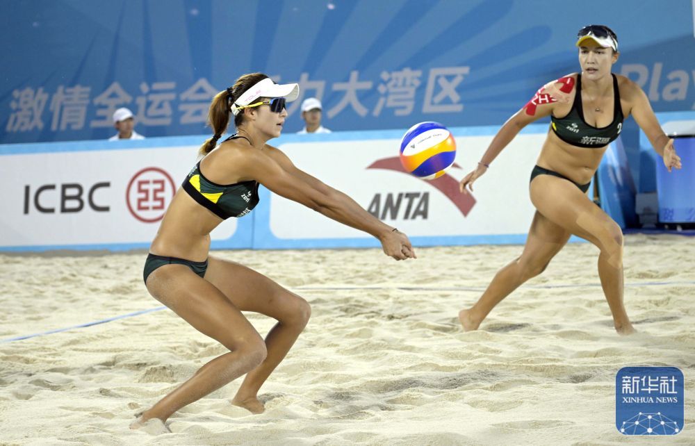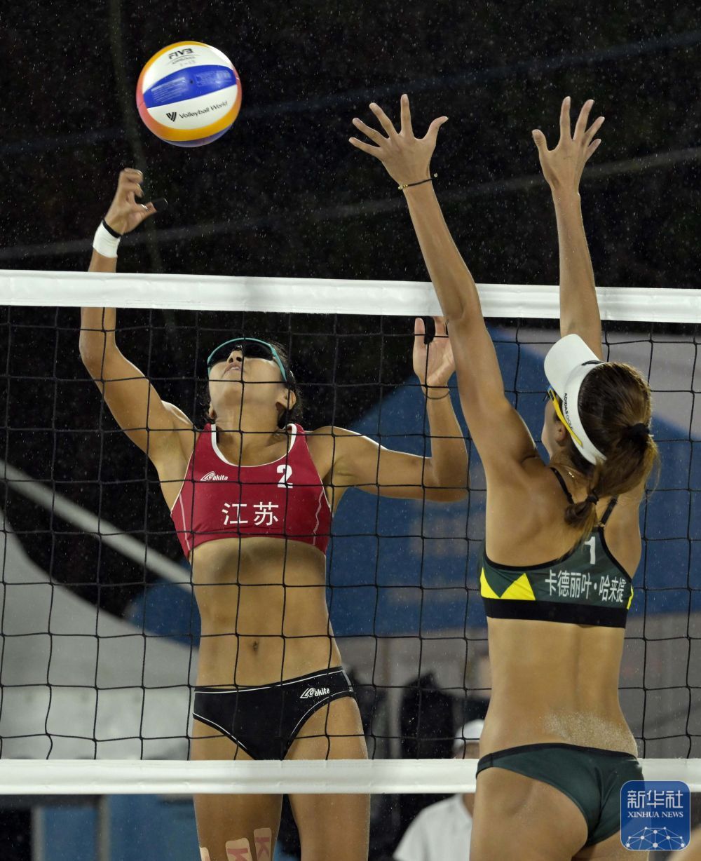 11月6日,在香港举行的第十五届全国运动会沙滩排球女子四分之一决赛中,江苏队组合袁吕雯/朱玲娣2比0战胜新疆队组合卡德丽叶/阿黑旦,晋级半决赛。