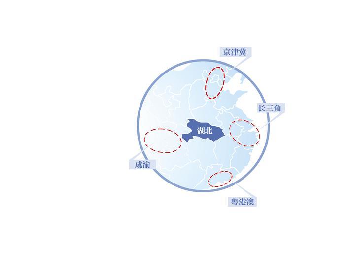 湖北处在“菱形构架”核心区位(京津冀、长三角、粤港澳、成渝四大城市群中心)