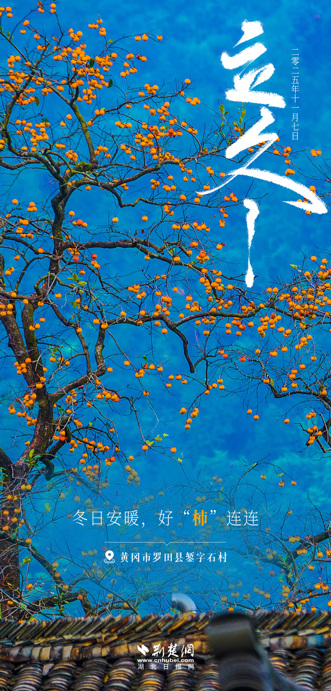 罗田錾字石村甜柿成熟挂满枝头,柿林掩映山村成独特风景