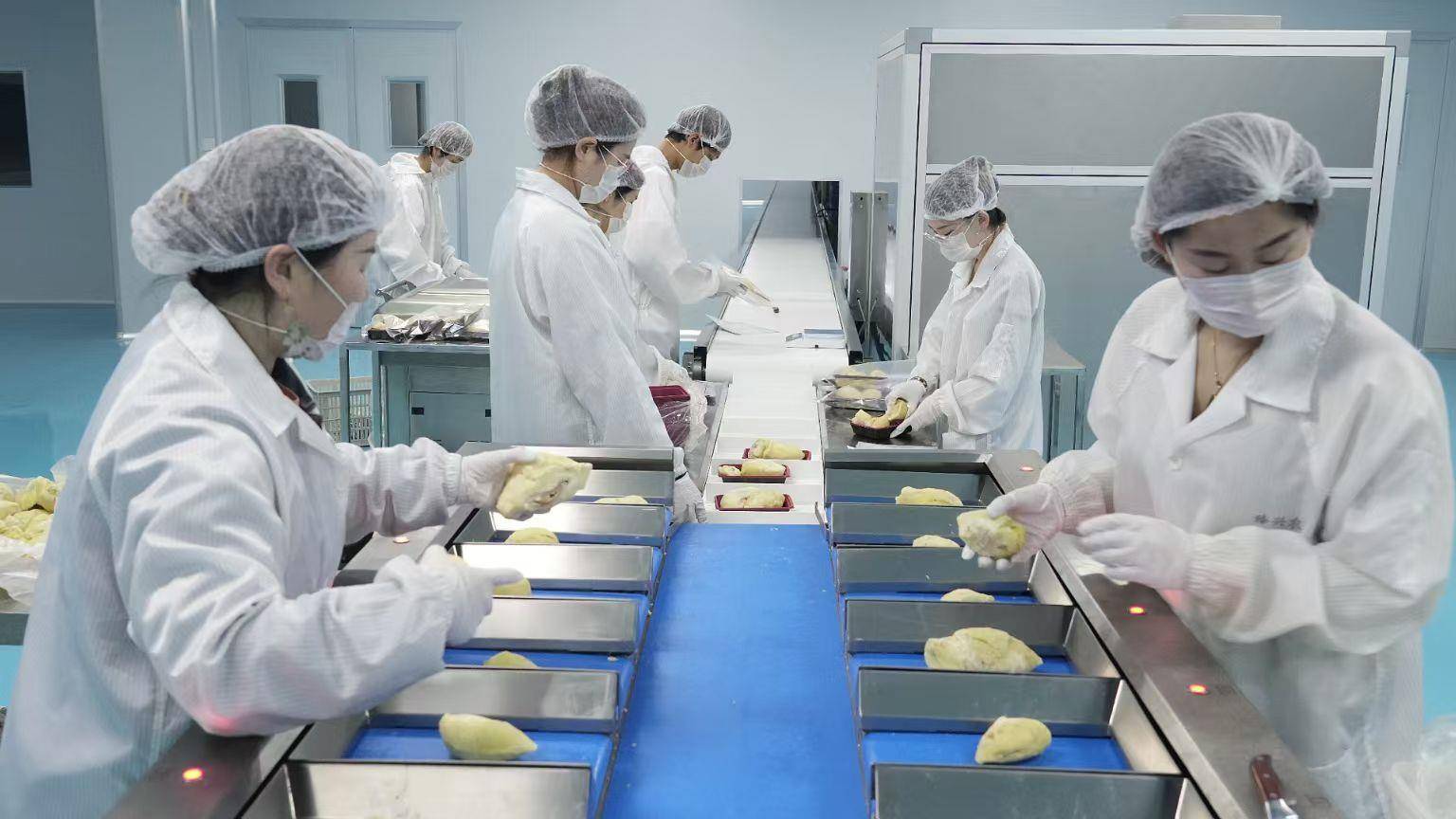 而在大畈镇白泥村,湖北臻兴农业科技有限公司的车间里,一条现代化的冻干食品生产线正不停运转,一批批果蔬冻干产品陆续下线,送入冷藏库。
